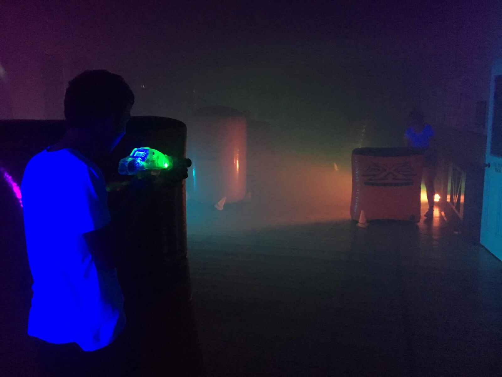 The Vortex Evolution consists of a selection of inflatable barriers of various shapes and sizes, these are used to create your playing arena. Complete with light effects and fog (venue permitting) we can transform an indoor space into an arena for Laser Tag to be played. We recommend the venue can be darkened (by either closing curtains or blinds) to give the full effect for the Laser Tag game. Due to each venue always being slightly different the arena design can vary from venue to venue as we work with the space that is available.