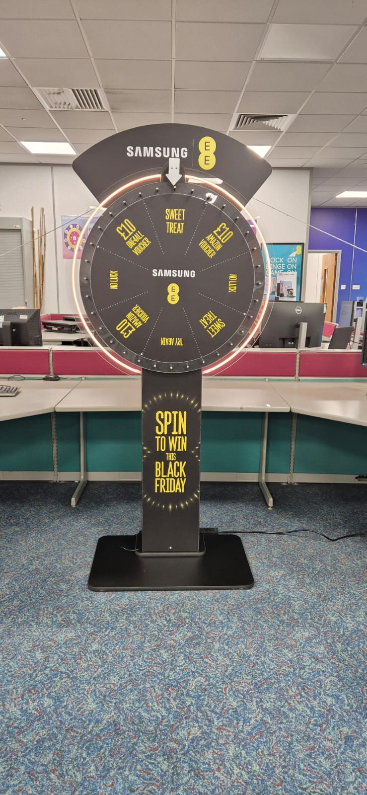 Whether it’s for a corporate event, brand activation, or themed party, we’ve got you covered. Prize Wheel Hire is a fun and engaging game, making it perfect for giving away prizes at Trade Stands, Exhibitions, Conferences and Brand Activations. It’s truley a classic hit at any event! Plus, you can fully customise the Prize Wheel with your corporate logo, colours, and designs to match perfectly your event’s theme or brand. Our in-house printing team will take care of the customisation and deliver the fully branded Prize Wheel Hire straight to your event, ensuring a seamless experience.